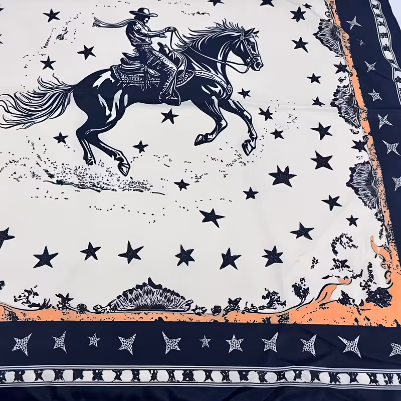 Додайте автентичного ковбойського шарму вашому образу! Ця бандана з динамічним принтом — ідеальний аксесуар для тих, хто цінує стиль вестерн, вінтажну естетику або просто шукає оригінальну деталь гардероба. Розмір 70х70 см. Состав: 100% Полієстер