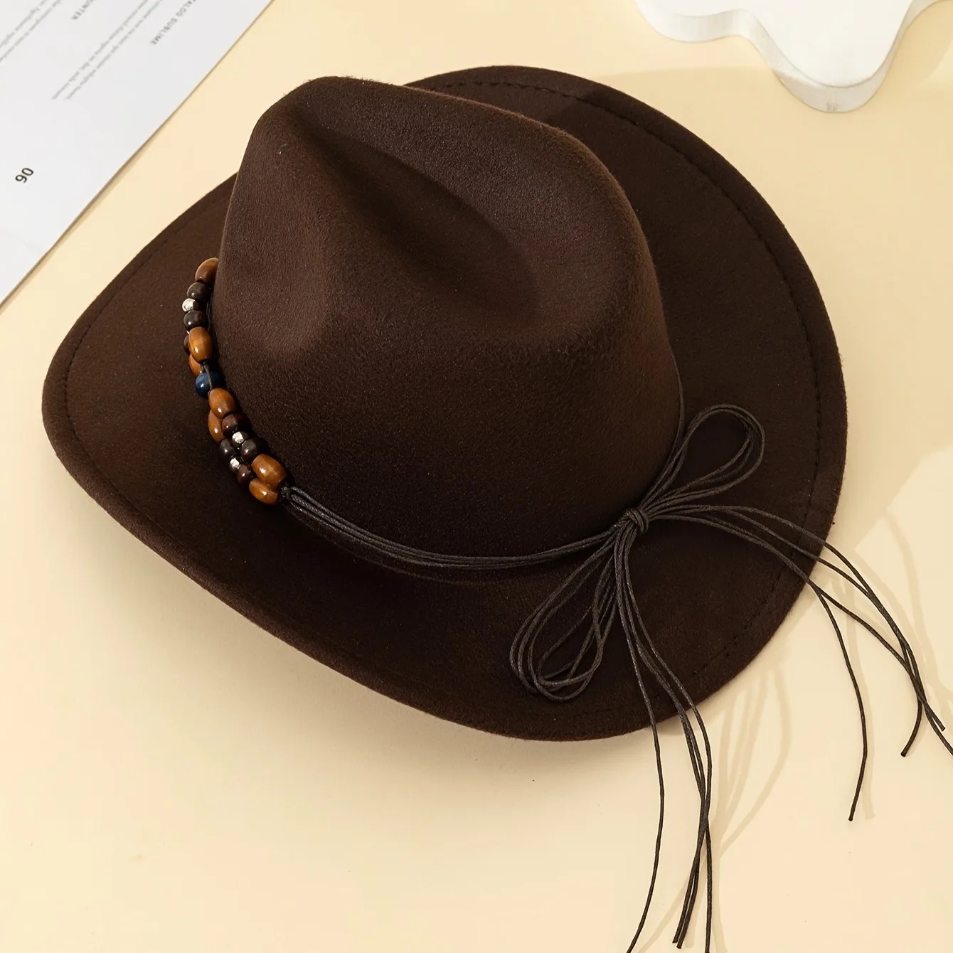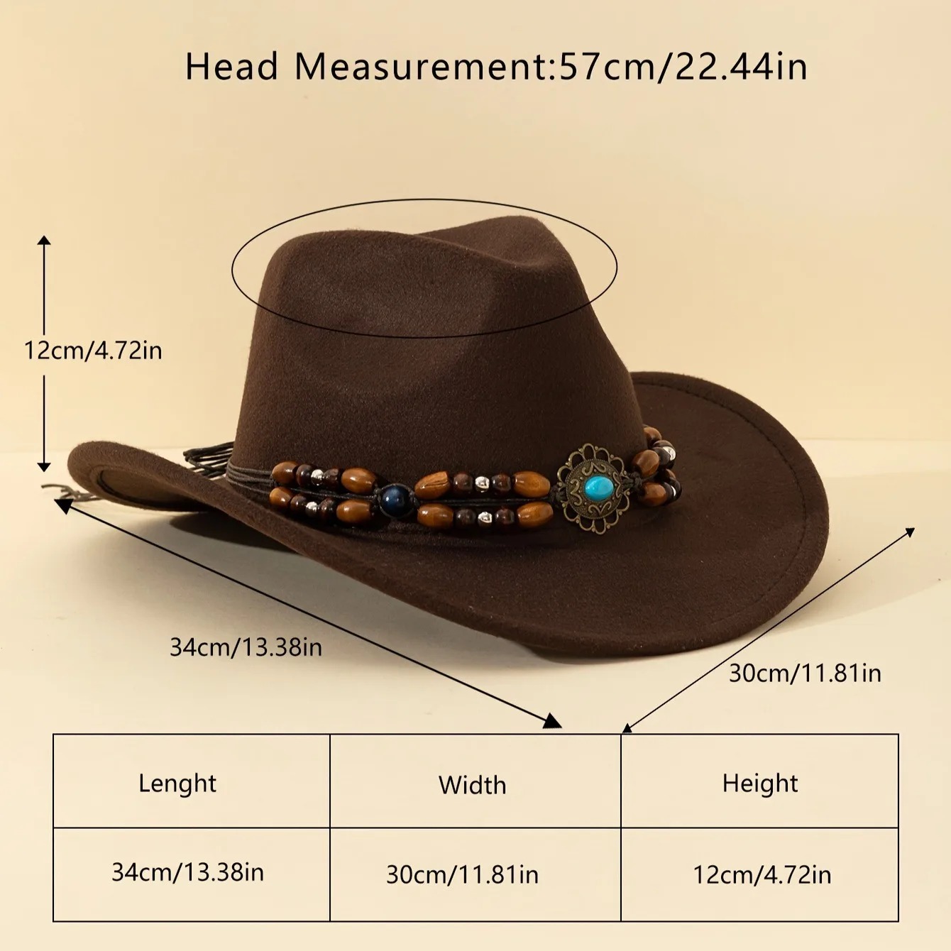 Декоративний капелюх з бірюзовим каменем та бісером, фетровий штучний матеріал, у західному ковбойському стилі.