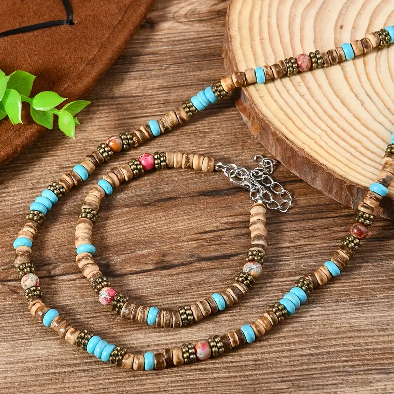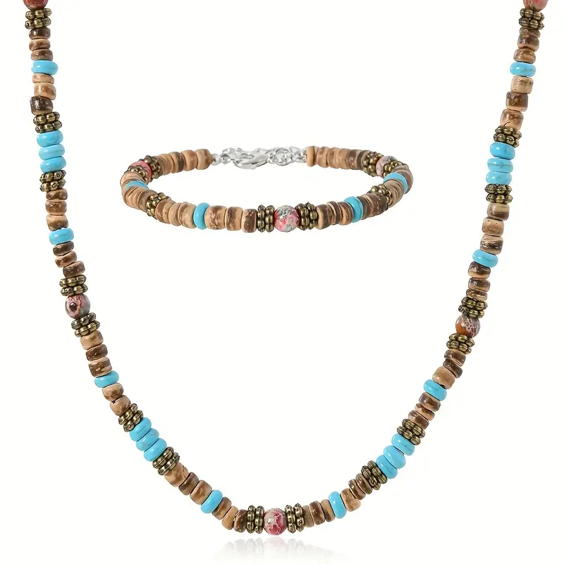 Набір з 2 предметів - багатобарвне намисто та браслет.