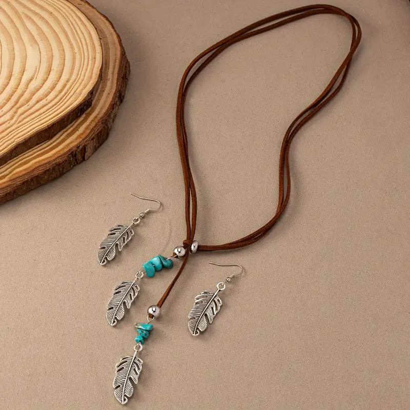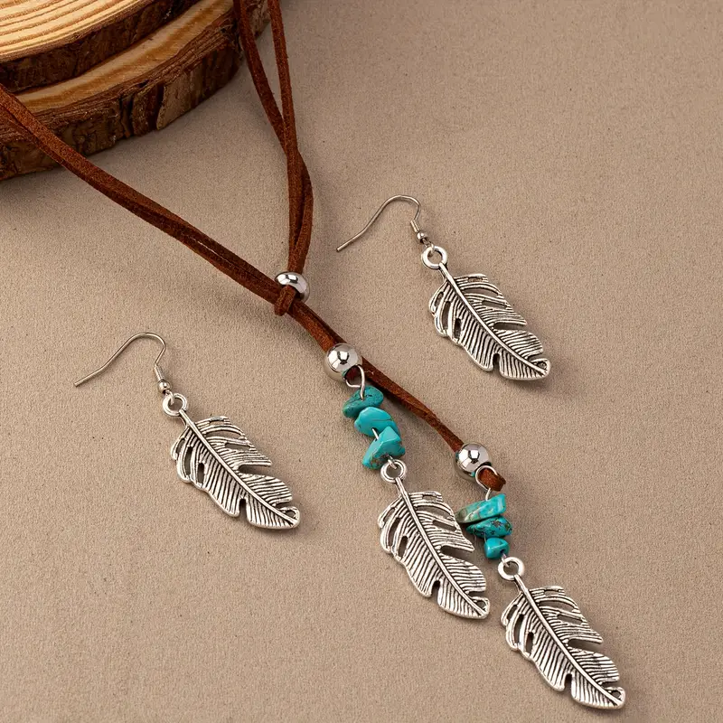 Намисто з підвіскою з пера зі штучним бірюзовим камінням.
