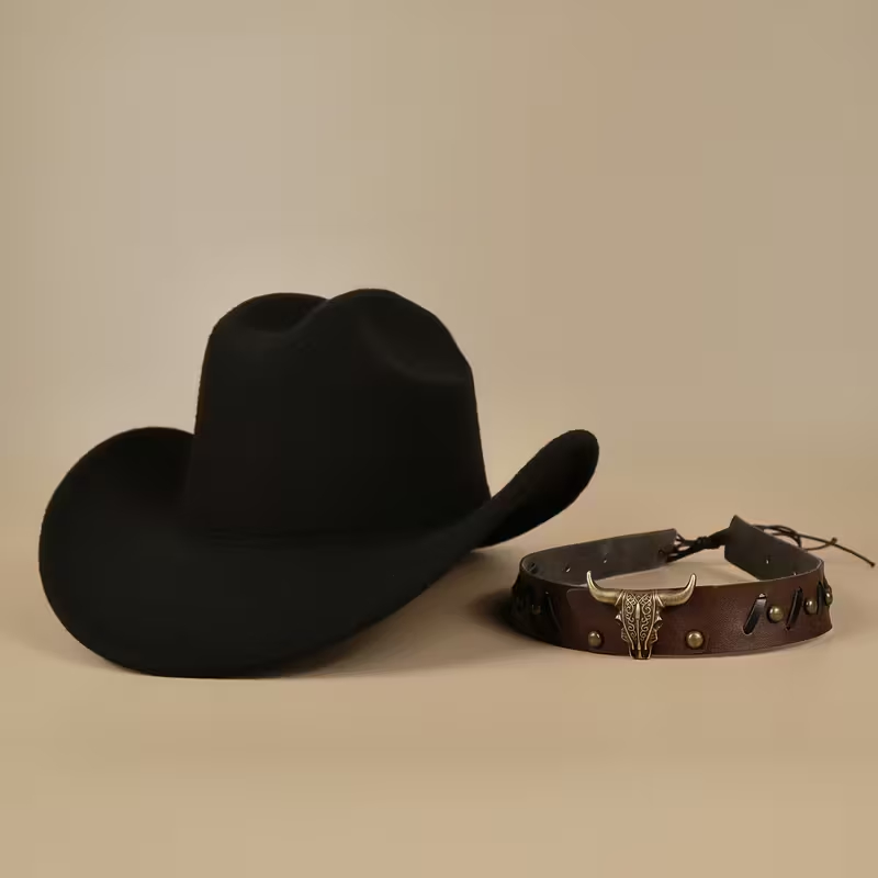 Класичний капелюх з твердим корпусом, пряжкою у вигляді голови бика та акцентами заклепок.
